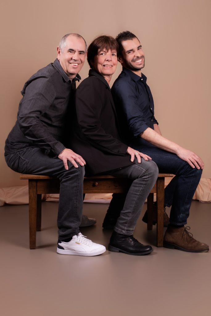 Il y a quelques mois, Guillaume a fait le choix d’offrir un cadeau précieux à ses parents, Sylvie et Joachim : une séance photo en studio pour leurs anniversaires. Sa démarche partait d’un constat que nous sommes nombreux à faire : à l’ère où nous prenons des dizaines de photos au quotidien, nous n’avons finalement que très peu de véritables et beaux portraits de nous-mêmes ou de nos proches. Parce que le temps file à une vitesse folle, il a ressenti le besoin d’immortaliser ses parents en renouant avec la tradition intemporelle du passage chez le photographe. Pour répondre à ses attentes, nous avons imaginé une séance sur mesure. Nous avons d’abord exploré l’élégance classique et sérieuse du portrait en noir et blanc, dans un esprit studio Harcourt. J’ai ensuite tenu à apporter ma touche personnelle avec des portraits individuels plus doux et fidèles à mon style chaleureux. Enfin, nous avons réuni ce beau trio pour des photos de famille vivantes, spontanées et pleines de sourires, afin de capturer l’essence même de leur complicité.